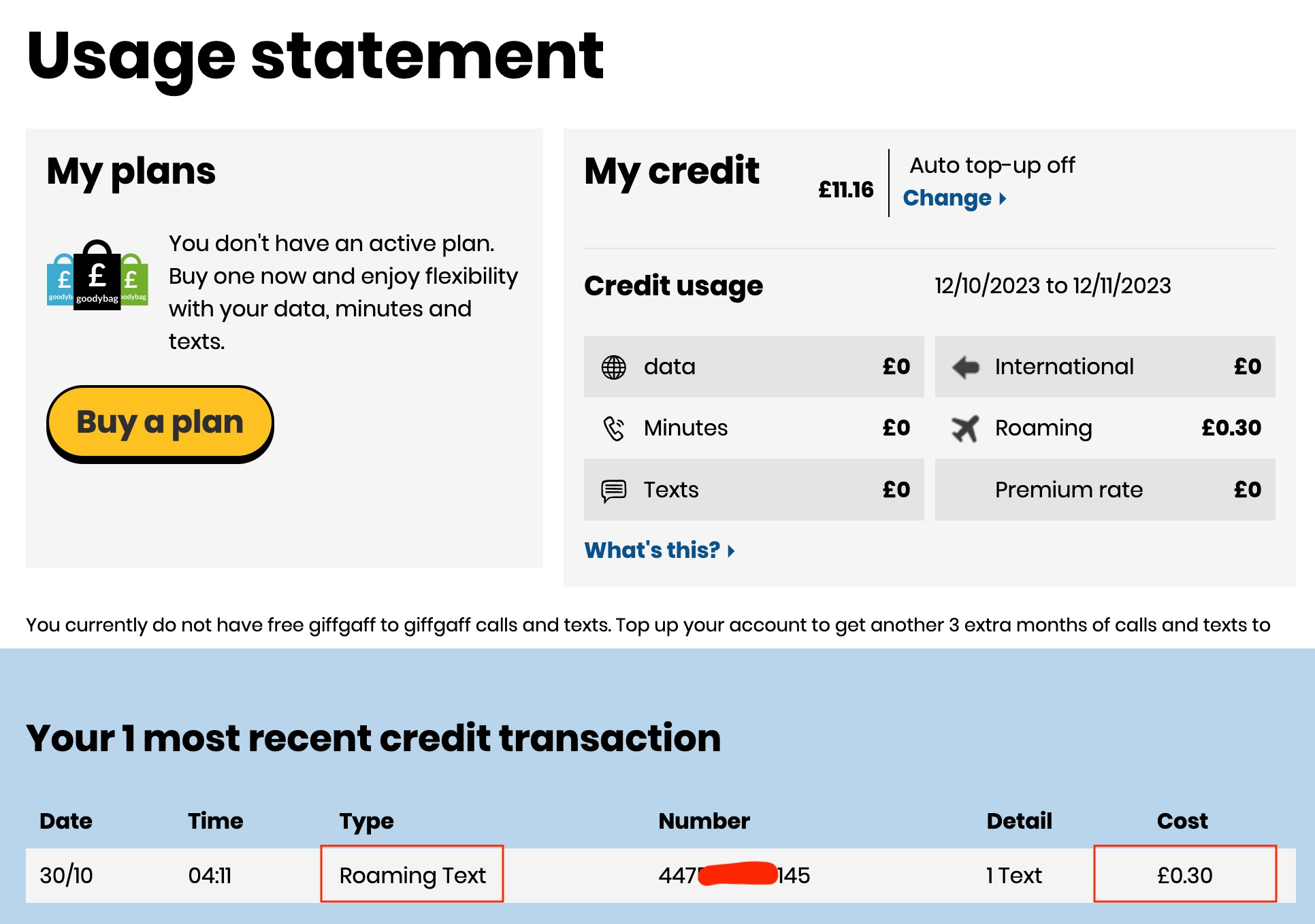 A:https://www.giffgaff.com/profile/usage-statement,一般是激活后一周后官网里可以看到具体的通话记录与账单,参考下图