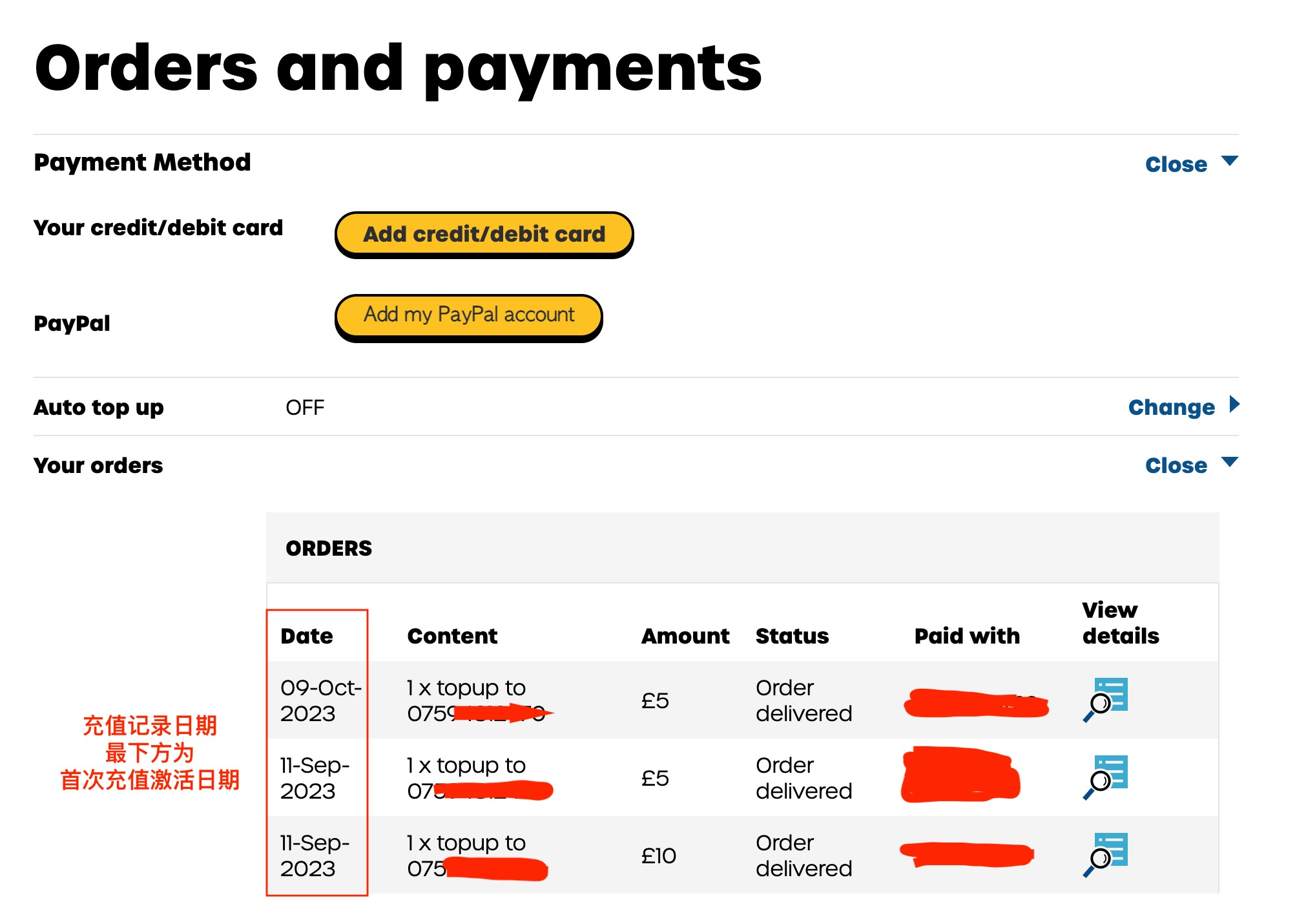 稳妥的办法,还可以自行在手机日历上做好提醒,以充值激活日期+170天为宜。查询充值激活日期的方法,登录官网,进入Orders and payments页面,点击View,就可以看到历史充值记录。